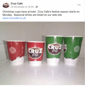 Cruz Cafe opted for cruisy certified-as-recyclable 12 & 16oz Gloss-finish Christmas Cups ❄️for their mobile coffee shop in Wales. ‘Coffee & More to Your Door!’ (Toasted Marshmallow Hot Chocolates for us please!)